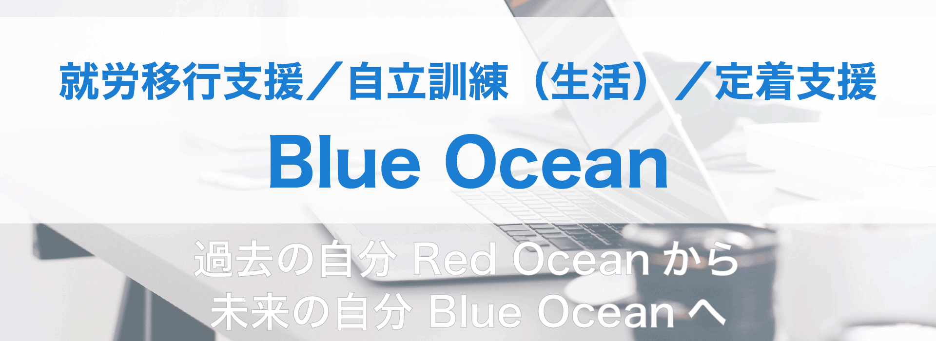 就労移行支援事業所 「Blue Ocean」で学ぶ事によって、『人生の「Red Ocean」から、「Blue Ocean」へ踏み出してほしい。障がいを武器に自分の得意なところや強みをどんどん見つけて、それらを伸ばし、誰もできないような仕事をしてほしい』という願いを込めています。